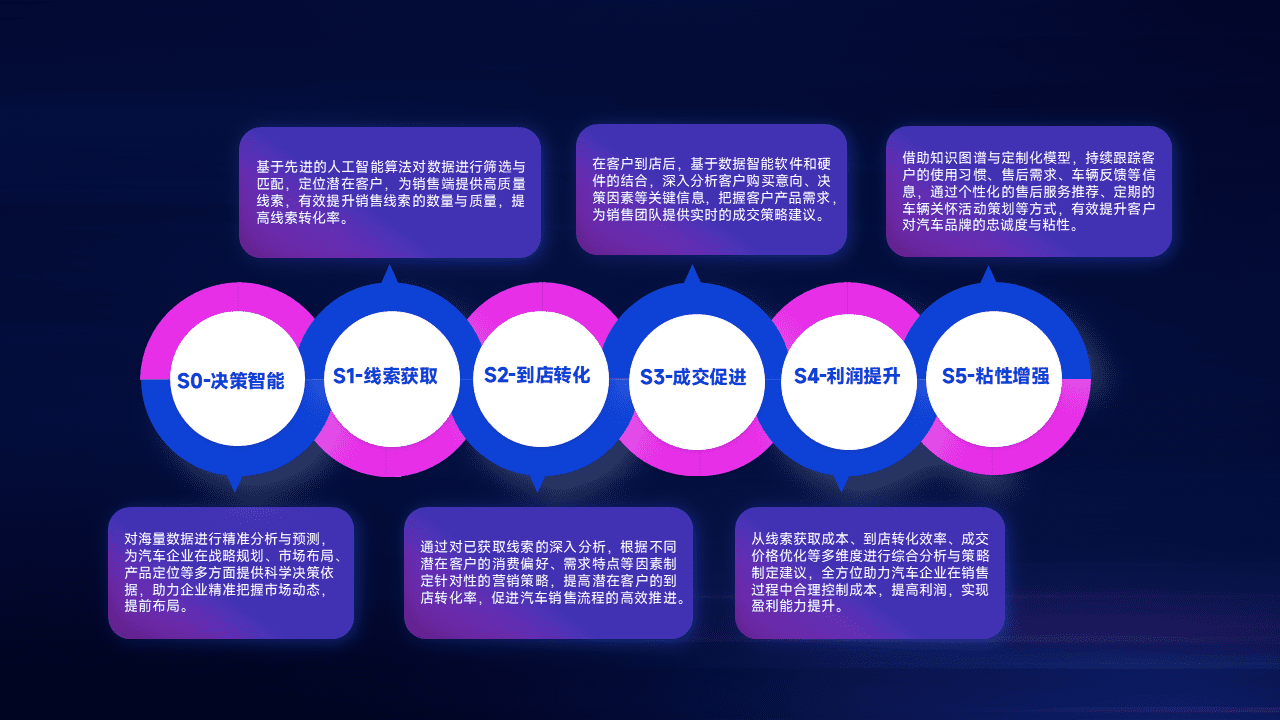 通过拓宽潜在客户来源、、优化线索分配并提高到店转化率,,,以增强销售效率。。。。同时,,,,利用线索数据不断优化分析模型,,,有效提升转化率,,,,扩大营销影响力。。